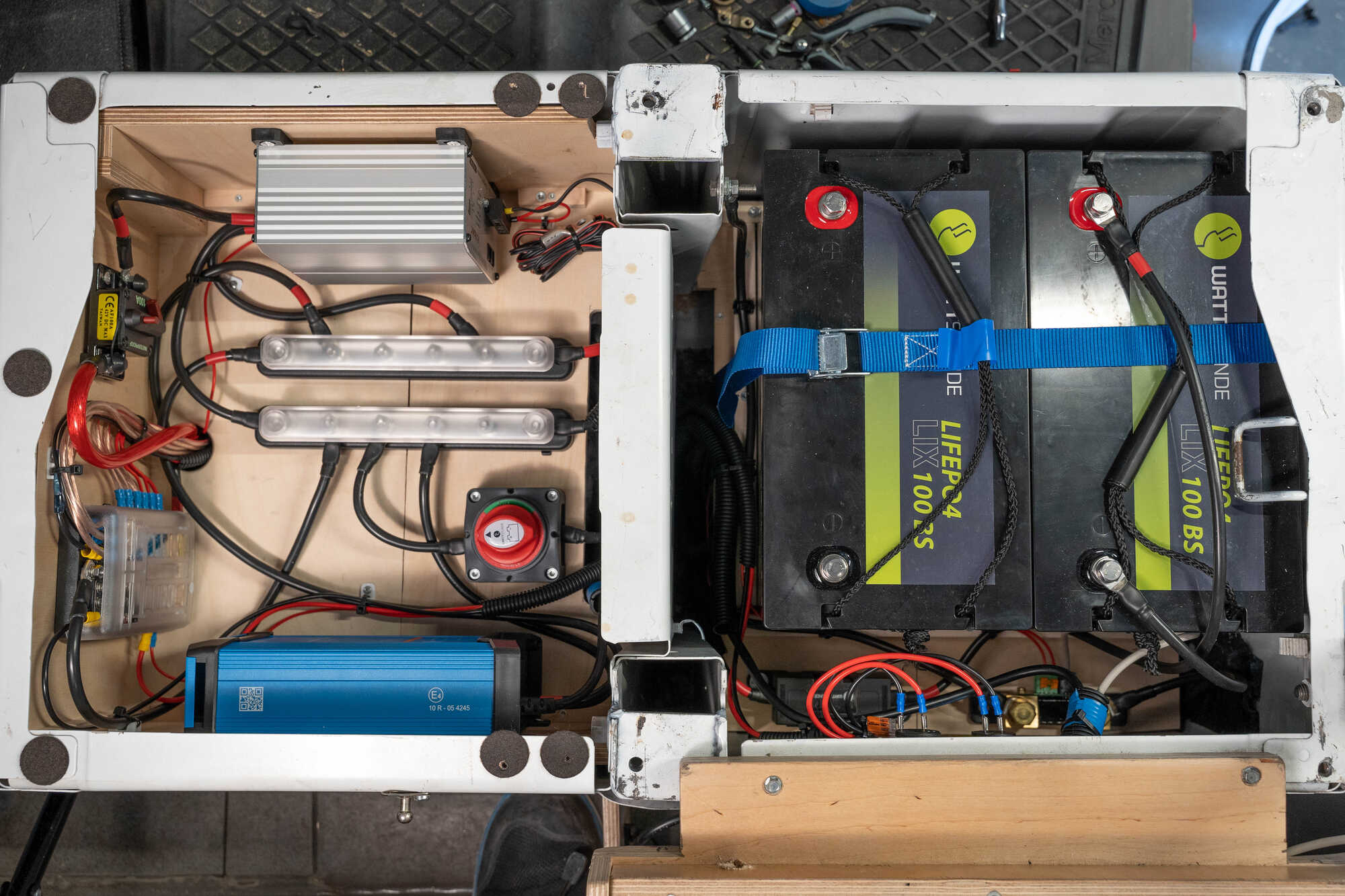 Als erstes wurde die chaotische, und nicht gerade vertrauenswürdige Elektroinstallation durch ein neues System mit 200Ah Lithiumbatterien, Ladebooster und Netzladegerät ersetzt.